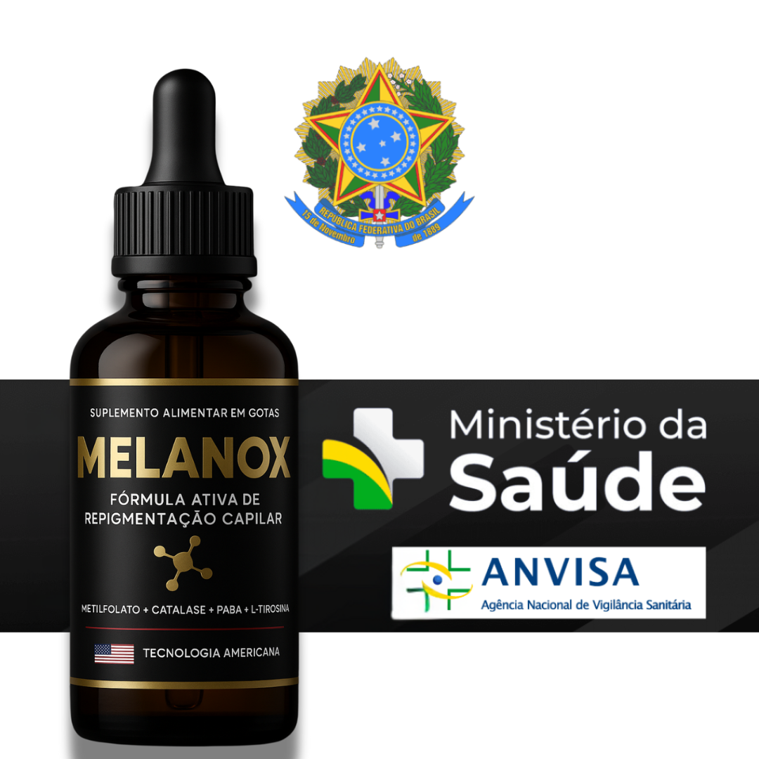 O Melanox tem como principal composto o Metilfolato (B9 - Ácido Fólico) ele é o ÚNICO composto da família de vitaminas b9 que não altera no organismo quando tomado com outras medicação (hipertensão, diabete, tireoide, controlados). Atua no escurecimento do cabelo e juntamente com a vitamina B6 e vitamina b12.